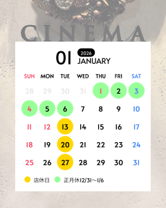一つ前の投稿では12月の営業日カレンダーを掲載しましたが、今回は1月のカレンダーになります